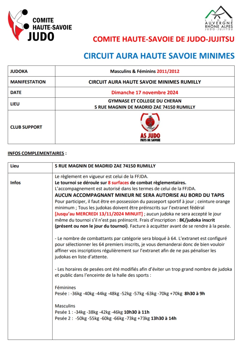 Horaires et Tarifs Dojo La Verpillière